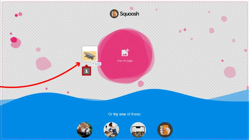 La prima cosa da fare è aprire l’immagine trascinandola all’interno della schermata.
