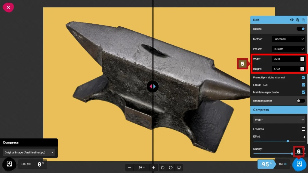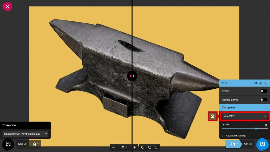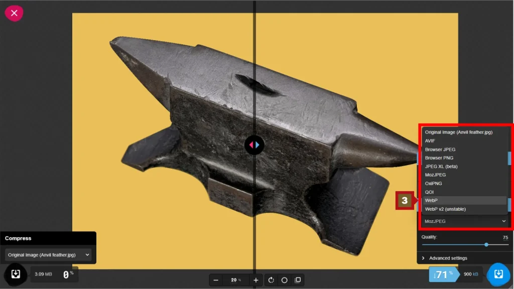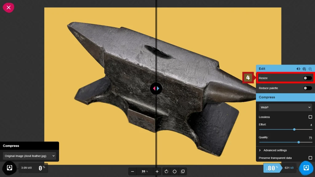Squoosh.app è uno strumento che consente di ridimensionare, comprimere e riesportare in diversi formati le tue immagini.